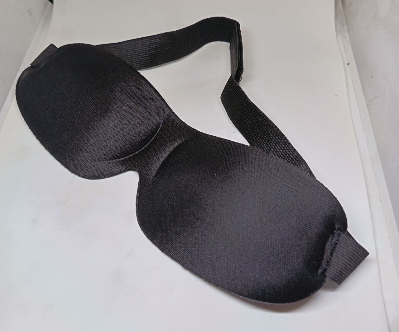 Mascherina oculare in spesso tessuto sagomato per ottenere l'oscurità necessaria per eseguire al meglio gli esercizi fosfenici. Cinghietto elastico con chiusura a velcro.